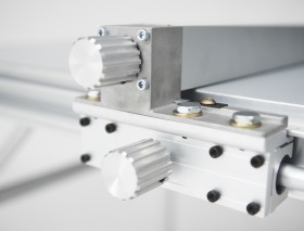유닛 베어링으로 움직임이 부드럽고 유격 발생을 최소화한 알루미늄 눈금자 레일.