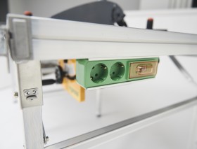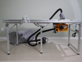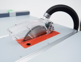 상판 고정 고용량 안전 멀티콘센트로 원형톱기계와 집진기를 동시 작동.